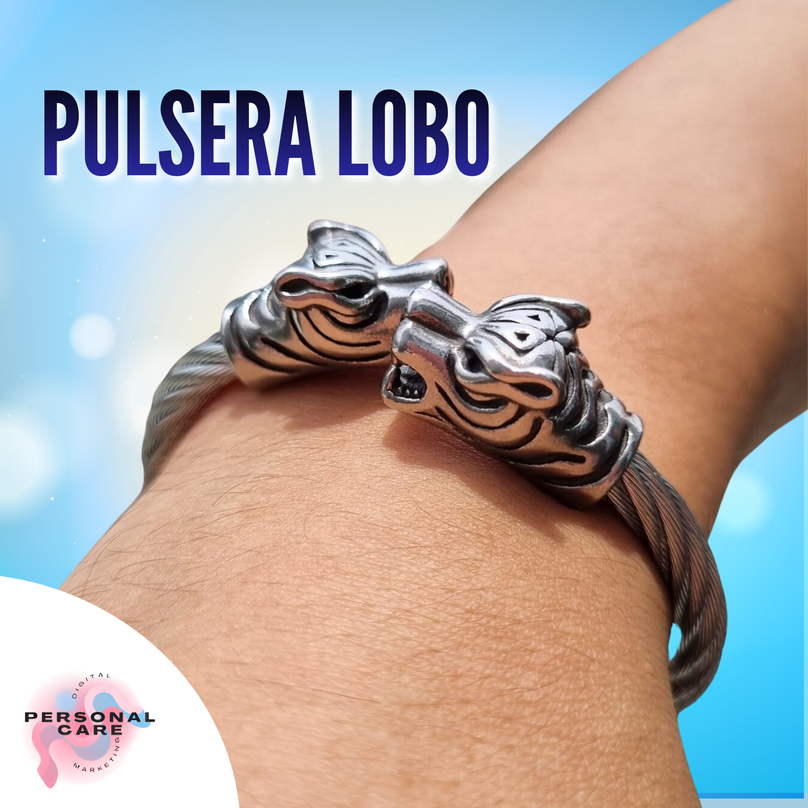 Pulsera con dije de lobo, símbolo de fuerza, liderazgo y protección. Ideal para quienes se identifican con un espíritu libre y valiente. Su diseño moderno la hace perfecta para uso diario o como accesorio especial.